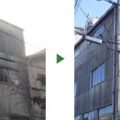 ご希望通り、敷地内に収まるようにフェンス・建物から1mほどあけて枝をきつめに剪定し、その際、しばらくして再び道路にはみ出たり建物に当たったりしないように、枝が伸びる方向を意識して作業を行いました。