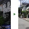 家の前の花壇で大きくなりすぎたコノテガシワと、家の裏の隣家との隙間に勝手に生えた桐を伐採した事例です。