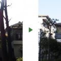 <移植> 高木 4本 低木 約10本 バークチップ敷均し 20㎡ <作業時間> 1日 |