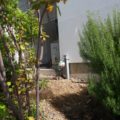 7. 土を洗い流して、完了さいごに作業でタイルに飛び散った土をホースで洗い流し、きれいに掃除をしたら、すべての作業が完了です。 ダイスギを伐根し、ソヨゴを植栽してお庭の雰囲気が明るい印象に
